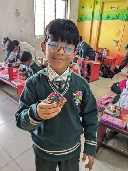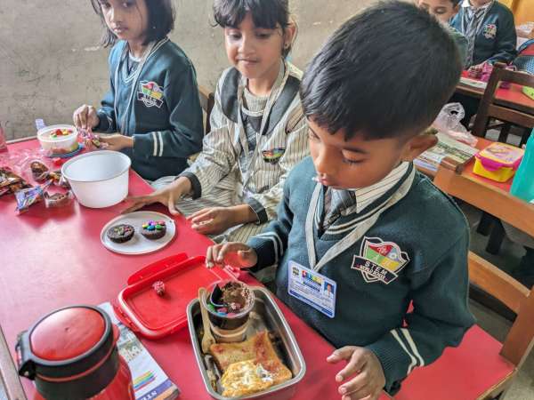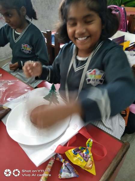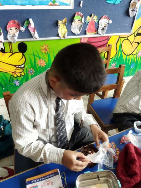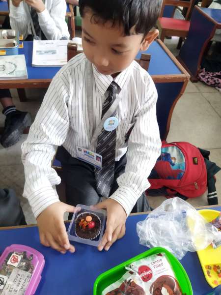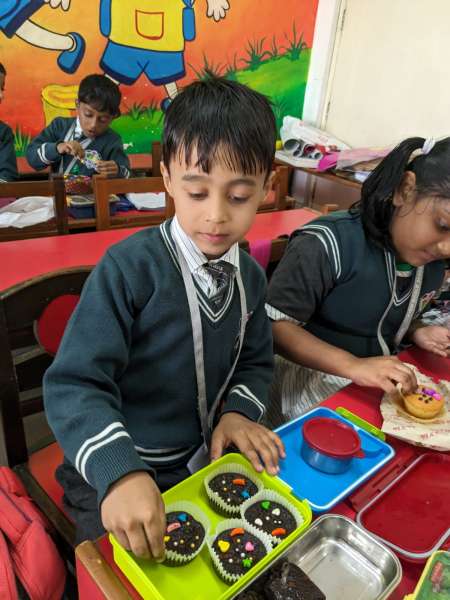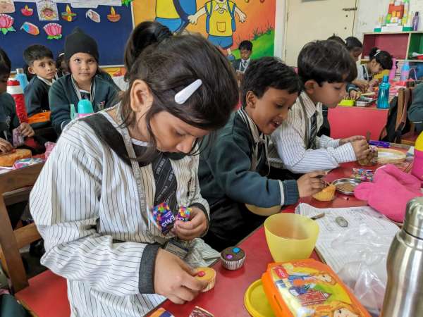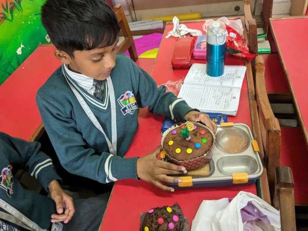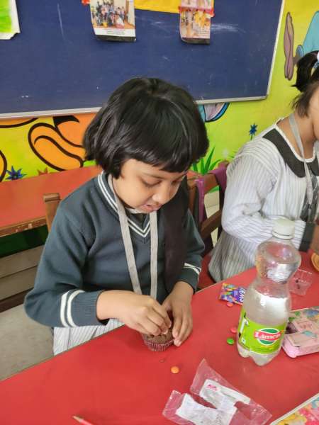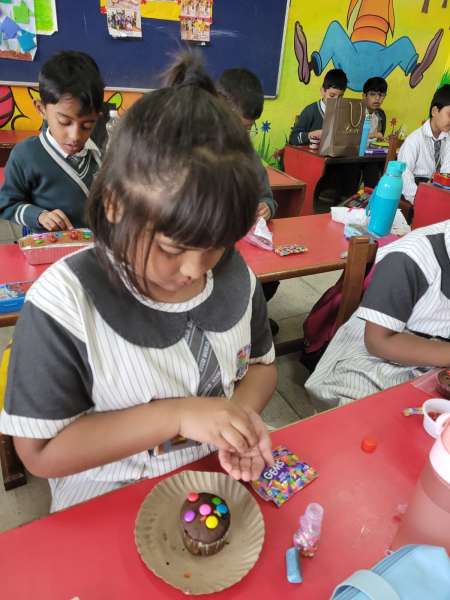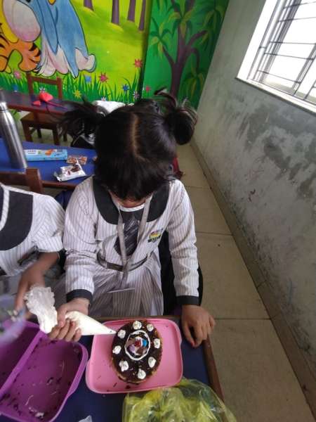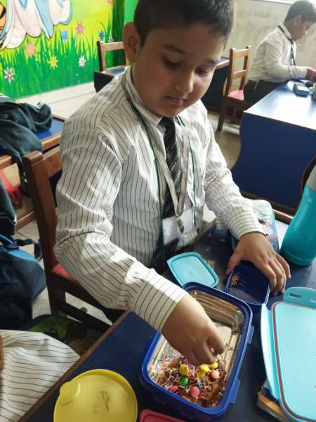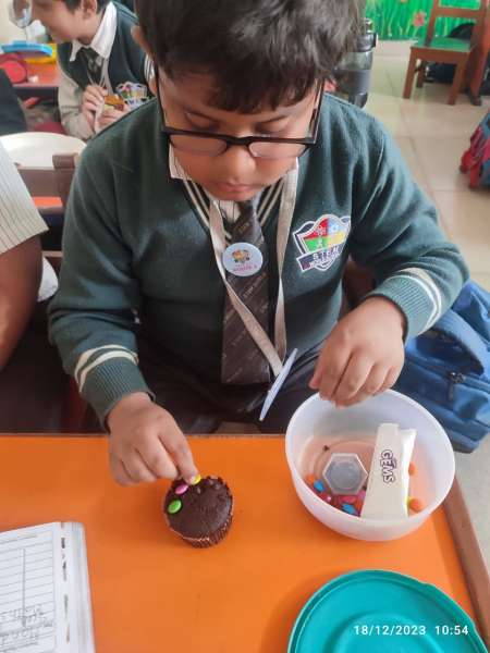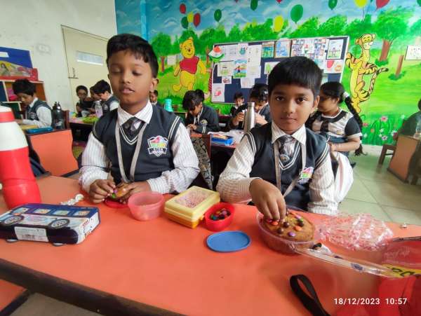 Pat - a - cake, pat - a - cake baker's man. Bake me a cake as fast as you can. It's so yummy to have a delicious cake. And we all like it, right? Sometimes a piece of cake acts sufficiently to tame our hunger. Baking a cake and decorating it nicely - is an art. The people who are masters in this art, are known as bakers. When you try to bake a cake by yourself it becomes a fun also. Hence we may say that CAKE means - Cheering And Knotting Enjoyment. Here we are going to present the little chefs of classes 1 and 2 of STEM World School having fun by decorating and sharing cake with everyone. Let's encourage them with a round of applause.