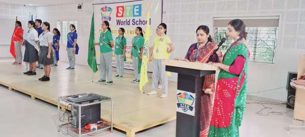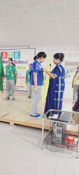 “Leadership and learning are indispensable to each other.” —John F. Kennedy The Investiture Ceremony of the Prefectorial Body of STEM World School for the academic session 2024-25 was held with high degree of earnestness and passion on Tuesday, 13.08.2024 in the school Auditorium. The ceremony was held with lots of zeal and zest. It commenced with a short speech. Then it was the time to announce the names of the flag bearers. • Jayati Mahanty of 12 S was selected the School’s Captainship, • Shawani Bhadra 12 C was selected the School’s Vice- captainship, • Raktima Ghosh of 11 H was selected the Captainship of Aryabhata House, • Natasha Agarwal of 9B and Shanaya Chakraborty of 9A were selected the position of Prefects of Aryabhata House, • Debayan Karmakar of 11 S was selected the Captainship of Bhabha House, • Aditi Subhramunian of 9A and Anjana Nayak of 9B were selected the position of Prefects of Bhabha House, • Protistha Chakraborty of 12 H was selected the Captainship of Ramanujan House, • Ali Roy of 10 A and Sinjini Jyoti of 9B were selected the position of Prefects of Ramanujan House • Samriddhi Pal of 12 C was selected the Captainship of Vivekananda House • Moupriya Mandal of 10 A and Jyoti Jana of 9 A were selected as the Prefects of Vivekananda House. The elected Leaders were decorated with badges and sashes by our Honourable Principal, Headmistress Ma’am and the respective House Parents and Assistant House Parents. The Prefect Body then took a solemn oath to hold the school motto of Loyalty, Truth and Honour in high esteem. Our Principal Sir congratulated them and our Headmistress Ma’am delivered a speech to motivate our newly elected council members. The function concluded with the National Anthem followed by an enlightening speech on gratefulness, positivity as well as a vote of thanks by our Honourable Principal.