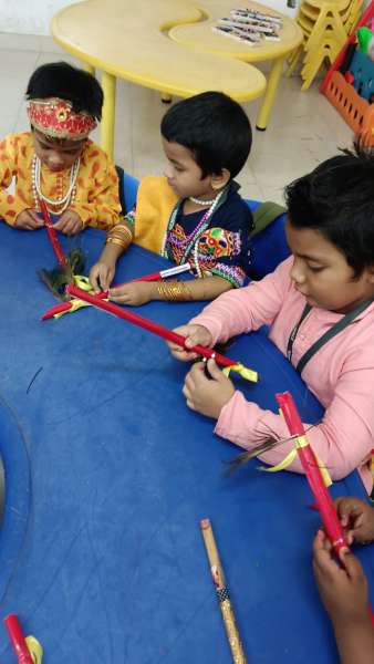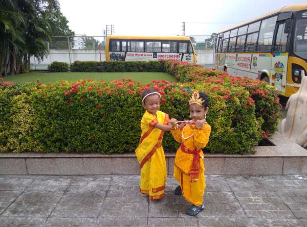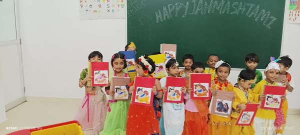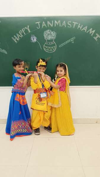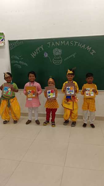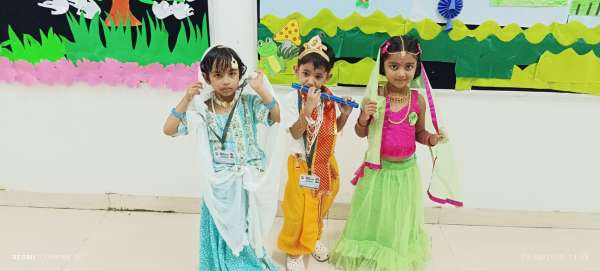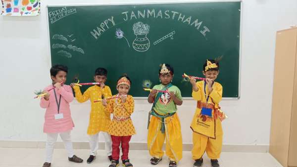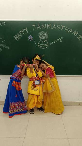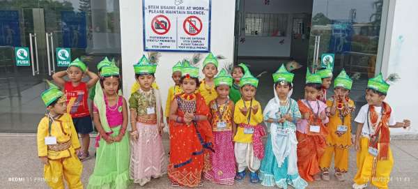 Janmashtami is an annual Hindu festival that celebrates the birth of Lord Krishna, the eighth avatar of Vishnu. Krishna is the supreme God and the source of all avatars. Krishna's birth is celebrated and observed at the eighth day of the dark fortnight in Shravan Mas or Bhadra Mas. His birth is celebrated to honour his divine mission of eradicating evil and establishing dharma. Janmashtami holds significant importance to Hindus around the world, and it is celebrated in diverse forms depending on their regional and cultural customs. Hindus celebrate Janmashtami by fasting, singing, praying together, preparing and sharing special food, night vigils, and visiting Krishna or Vishnu temples. The places of Mathura and Vrindavan are visited by pilgrims.Some mandirs organize recitation of Bhagavad Gita in the days leading up to Janmashtami.Hence the festival of Janmasthami not only celebrates the victory of good over evil, but also it flourishes a huge amount of happiness among people. In this regard let's enjoy the celebration of Janmashtami with our Kanhas and Gopis of Pre-Primary of STEM WORLD SCHOOL and appreciate them.