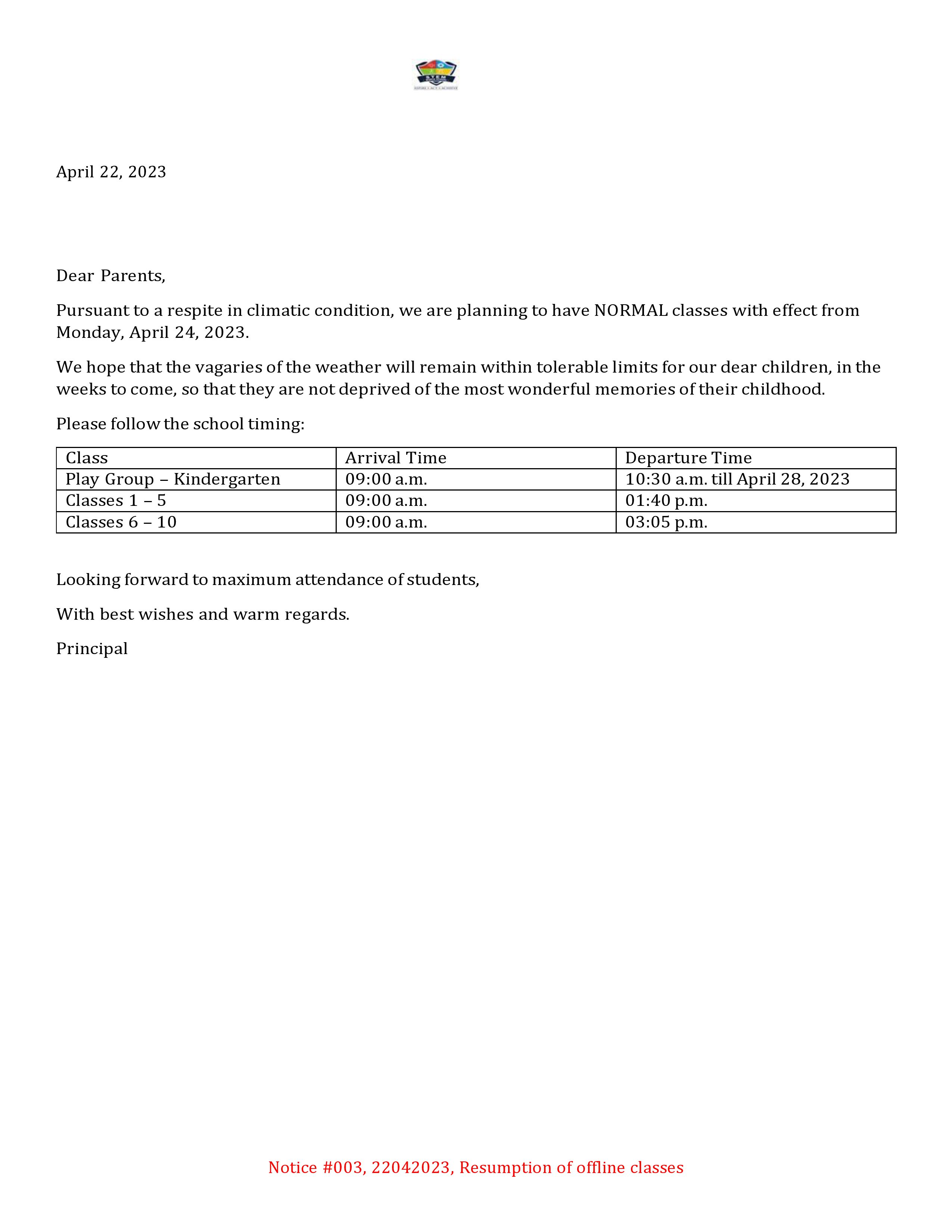 Resumption of Offline Classes