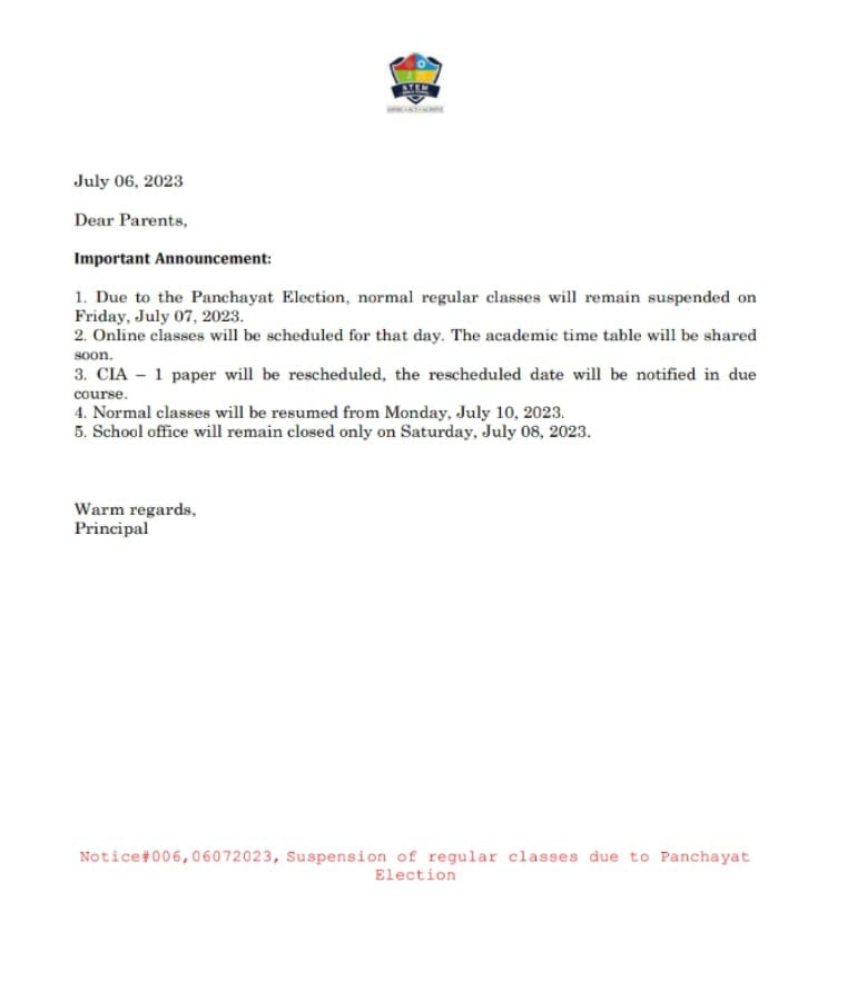 Suspension of regular classes due to Panchayat Election