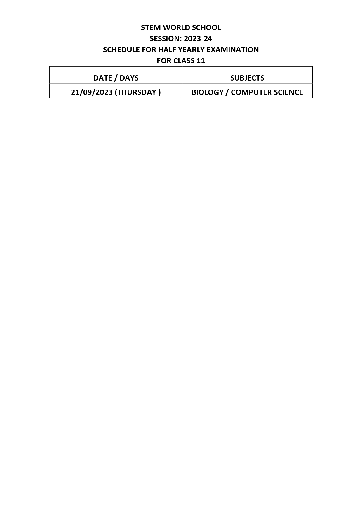 REVISED HALF YEARLY ROUTINE 11